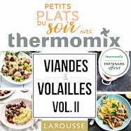 Larousse et Thermomix® ont eu le plaisir de s’associer pour vous offrir « Petits plats du soir avec Thermomix® » ! Des recettes pour renouveler un quotidien toujours gourmand et étonner ses invités… Retrouvez le chapitre « Viandes & volailles » partie II.