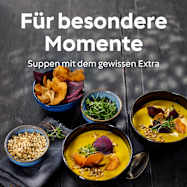 Festliche Momente mit unseren edlen Suppen: Jede Schale ist ein Highlight für die Festtafel. Schnell zubereitet, elegant serviert und perfekt zum Einstimmen auf einen besonderen Abend. Verführe deine Gäste mit Wärme, Aroma und einem Hauch von Luxus.