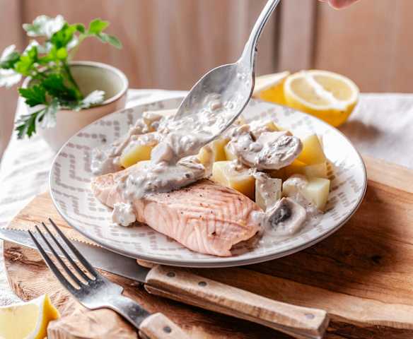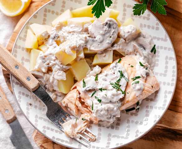 Kremalı Mantar Soslu Patatesli Somon