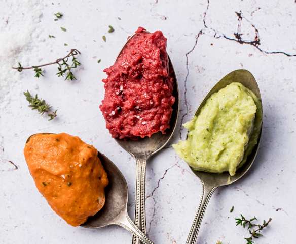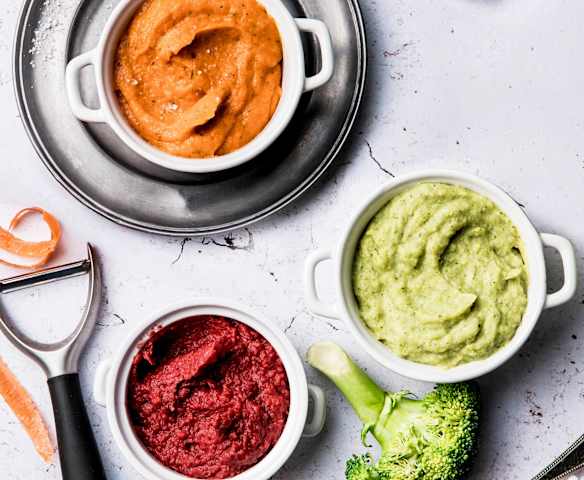 • sebze (ör. kabak, havuç, kereviz, bezelye, karnabahar, brokoli), küçük parçalara bölünmüş (1-2 cm) (bk. öneriler)