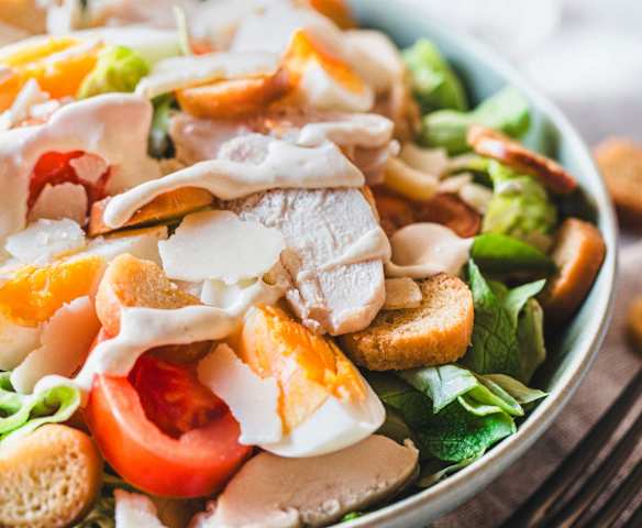 2 filets de poulet, cuit, en tranches (1 cm)8 tranches de jambon de poulet en lanières