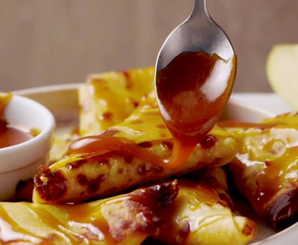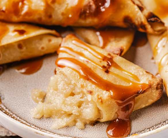 Samoussas de crêpe, pomme vanille et caramel au beurre salé
