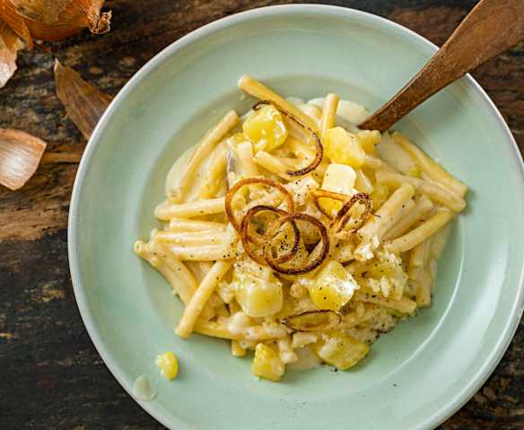 Maccheroni dell’alpigiano e cipolle croccanti