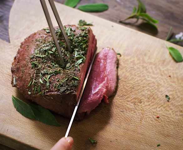 di carne di manzo tipo scamone, in un solo pezzo700 g