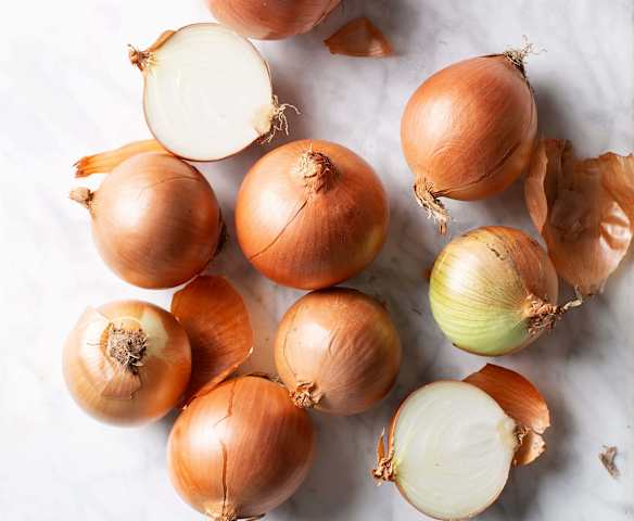 yellow onions cut in halves, then cut into wedges (½ in.), divided17 ½ oz