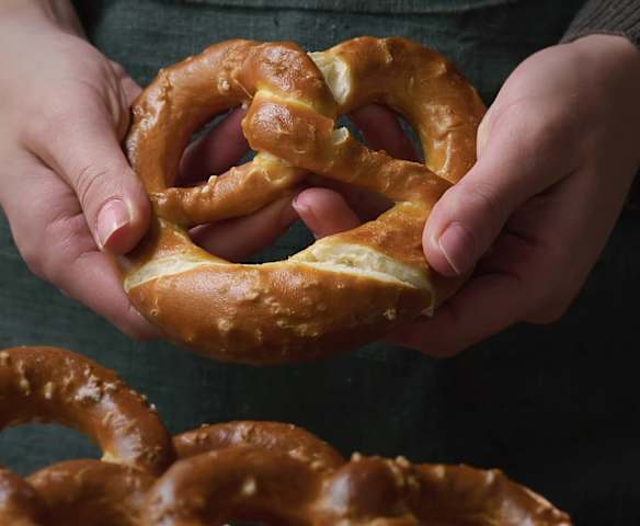 Bretzel farciti con speck, Emmental e cetriolini