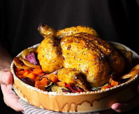Poulet à la sauce aux poivrons et coucous aux courgettes et à la feta