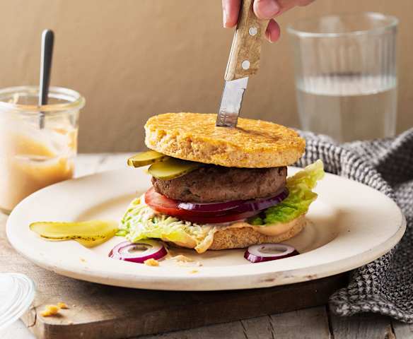 Sandwich au fromage faible en glucides avec galettes de hamburger