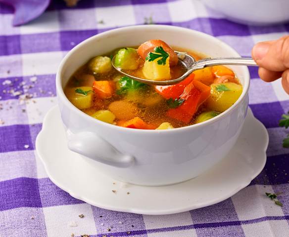 2 Würfel Gemüsebrühe (für je 0,5 l)Gewürzpaste für Gemüsebrühe, selbst gemacht2 geh. TL