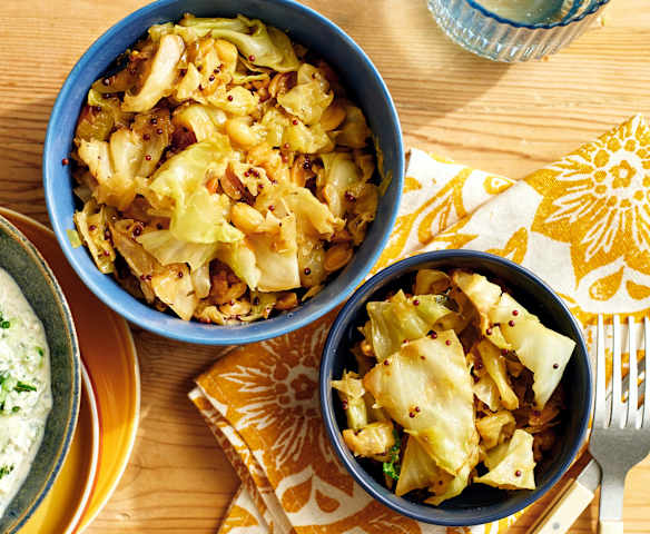 Savoy cabbage with curry leaves & mustard seeds