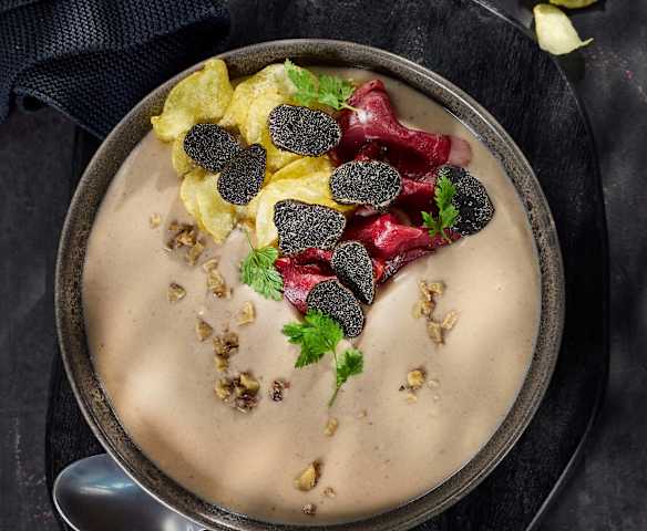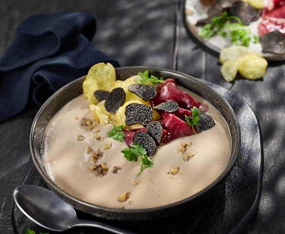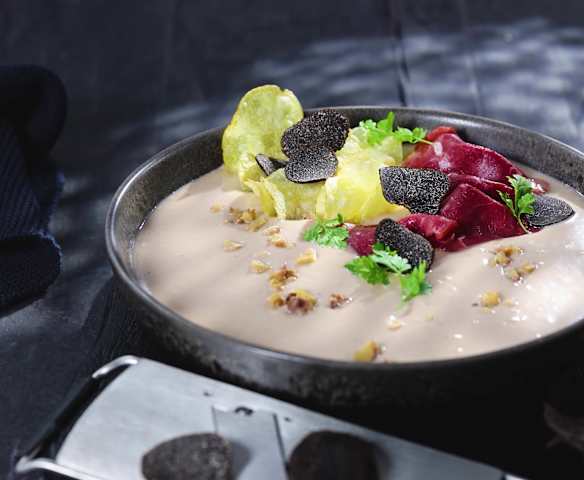 Getrüffelte Maronensuppe mit geräucherter Ente