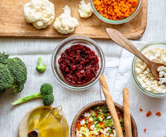 綜合蔬菜水果 (e.g. 70 g celeriac, 150 g beetroot, 380 g carrots, 150 g apples), cut in pieces as needed500 克
