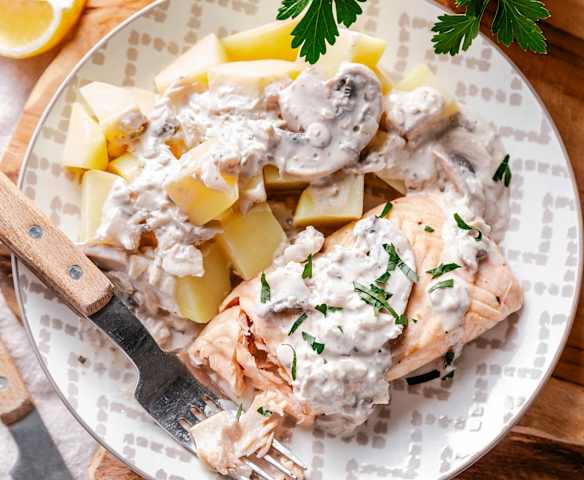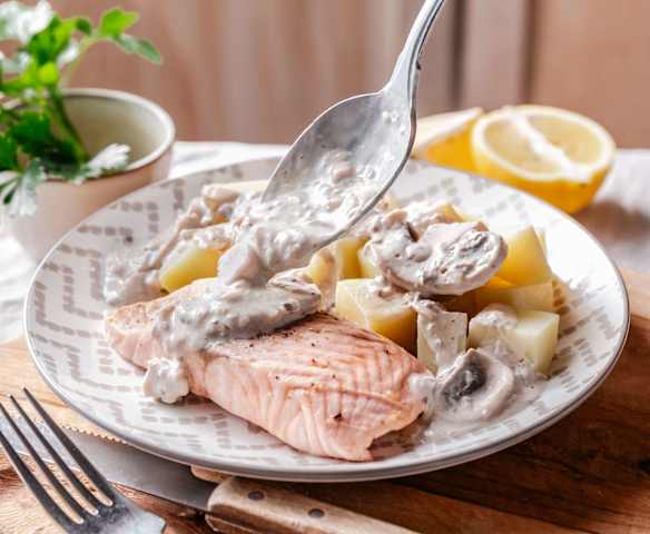 鮭魚佐奶油蘑菇醬拌馬鈴薯