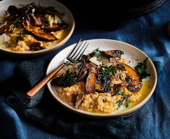 Kent pumpkin (approx. 1000 g), unpeeled, cut into 12 thin wedges (1 cm), peel and cut remainder into pieces (2 cm)¼