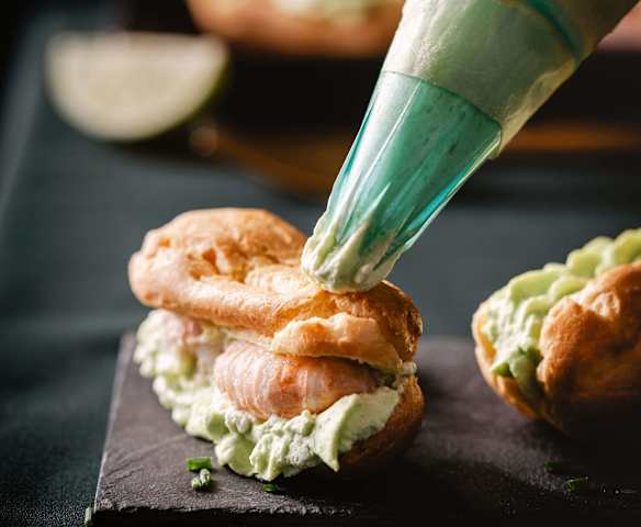 Gaufres vertes aux épinards, saumon fumé et graines germées