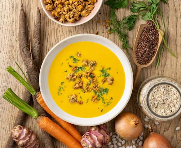 Schwarzwurzel-Hafer-Suppe mit Bohnengranola