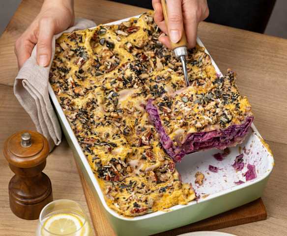 Rotkrautlasagne mit Tofu-Béchamelsauce (vegan)