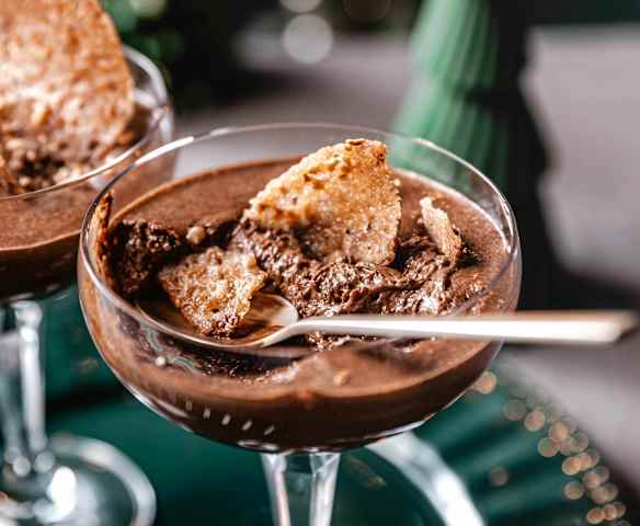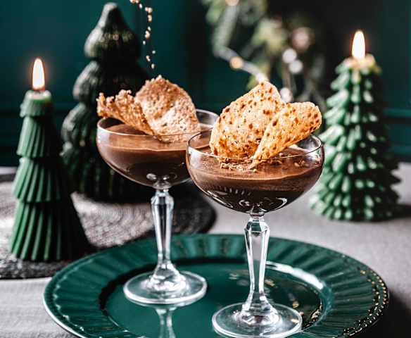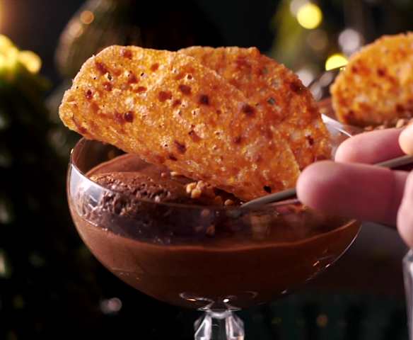 Mousse au chocolat en verrine et tuile praliné