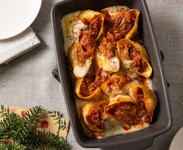Conchiglioni ripieni di ragù di carne e besciamella