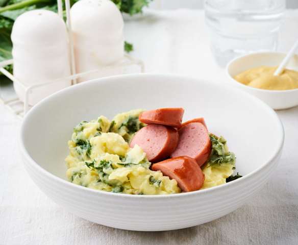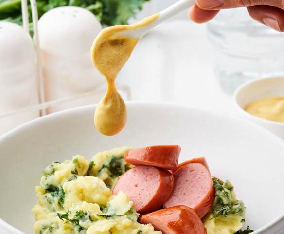 Purée de Chou Frisé avec Saucisse fumée et Moutarde